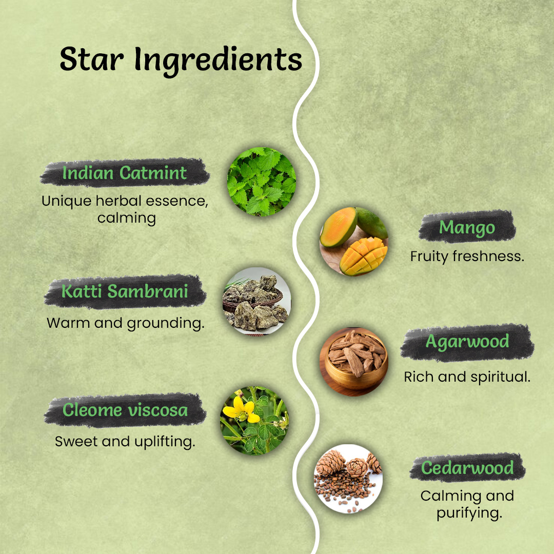 Each ingredient in Sambrani plays a unique role in shaping its fragrance and contributing to the cultural, spiritual, and aromatic experience it offers.