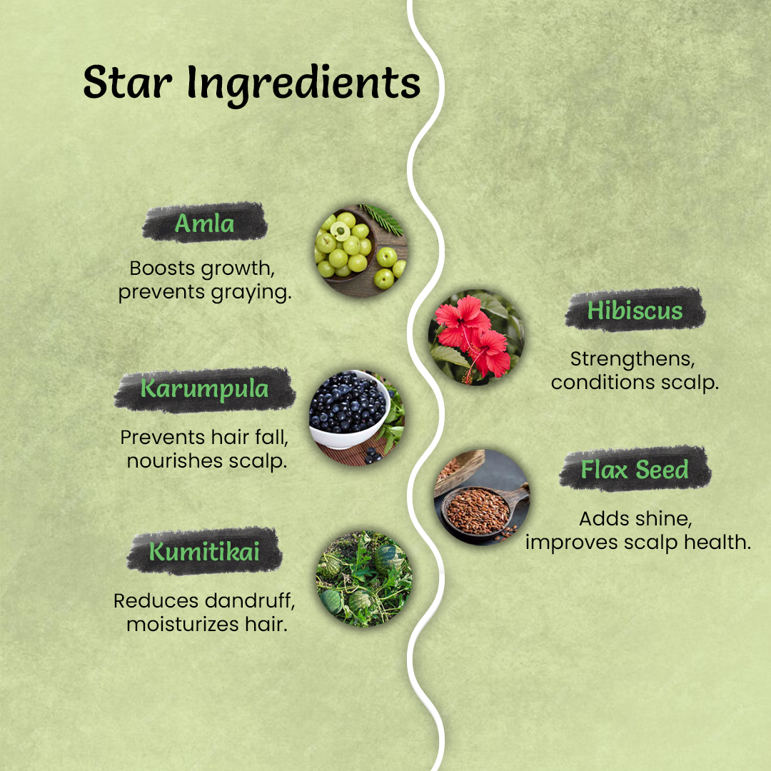 Kanimaranjandu | Extract | Kanimaranjandu (Cluster Fig) | Conditions hair, promotes shine, and helps in detangling. | Natural |