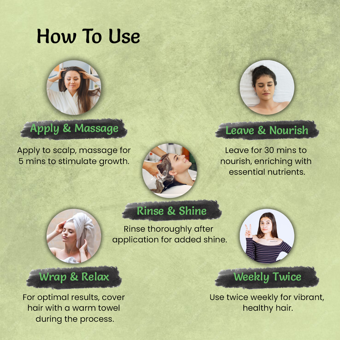 Enhanced Absorption: For optimal results, cover your hair with a warm towel during the deep-nourishing treatment. This helps enhance the absorption of the herbal goodness.